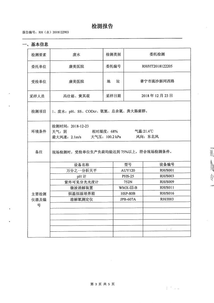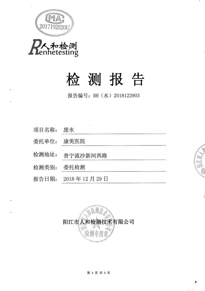 康美醫院2018年第四季度廢水檢測報告