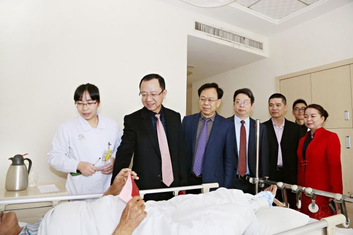 康美醫院院長邱浩強帶領副院長陳松深、副院長林東浩、護理部主任陳春燕、行政後勤李麗江和黃浩銳等同志深入病房,慰問患者,給他們帶來了新年祝福,鼓勵他們戰勝疾病争取早日康複出院,同時慰問春節期間堅守臨床一線的醫護人員,表揚他們愛崗敬業、默默奉獻的崇高精神,激勵他們繼續認真做好本職工作,爲患者的早日康複盡心盡力。