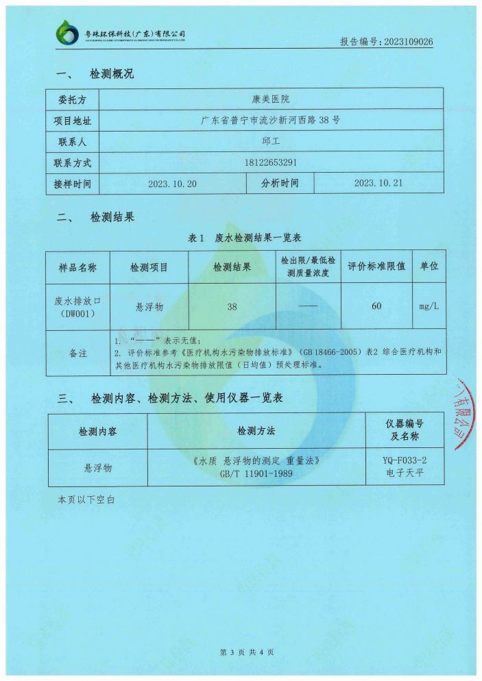 您現在的位置是:康美醫院網站 > 信息公開 > 環境監測信息 > 2023年10月、11月檢測報告